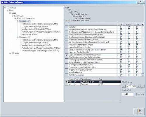 Die umfangreichen Checklisten der Tätigkeiten können auch auf ein mobiles Gerät wie zum Beispiel einen Laptop oder Tablet PC übertragen werden. Auf diese Weise hat der Monteur vor Ort die Möglichkeit, die Arbeiten abzuhaken (okay/nicht okay/repariert) und die Messwerte direkt einzutragen. So stehen die exakten Daten im Computer stets zur Verfügung. Der mobile Einsatz von TGM führt zu einer lückenlosen Anlagenhistorie ohne zusätzlichen Erfassungsaufwand im Büro. Auf Knopfdruck kann nachgesehen werden, wie sich die Anlage entwickelt hat. Automatisch erstellte Protokolle der „nicht okay“-Teile lassen sich >zur weiteren Instandsetzung nutzen.